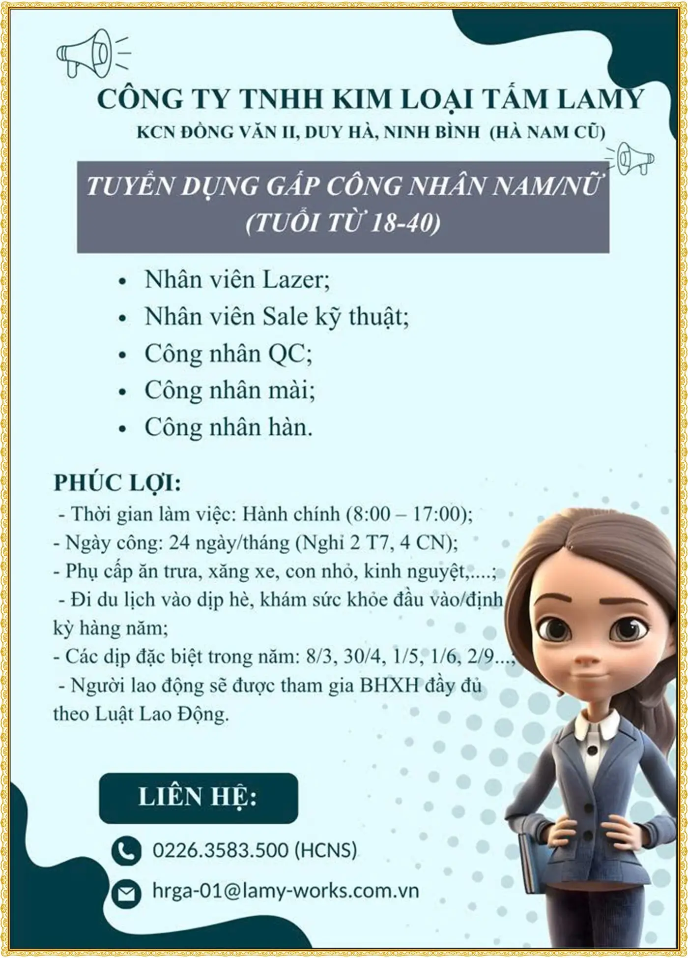 📞 Liên hệ ngay: 0226.3582.596 (Phòng HCNS) 📧 Email: