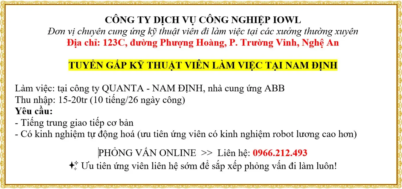 TUYỂN GẤP: NHÂN VIÊN KỸ THUẬT SẢN XUẤT