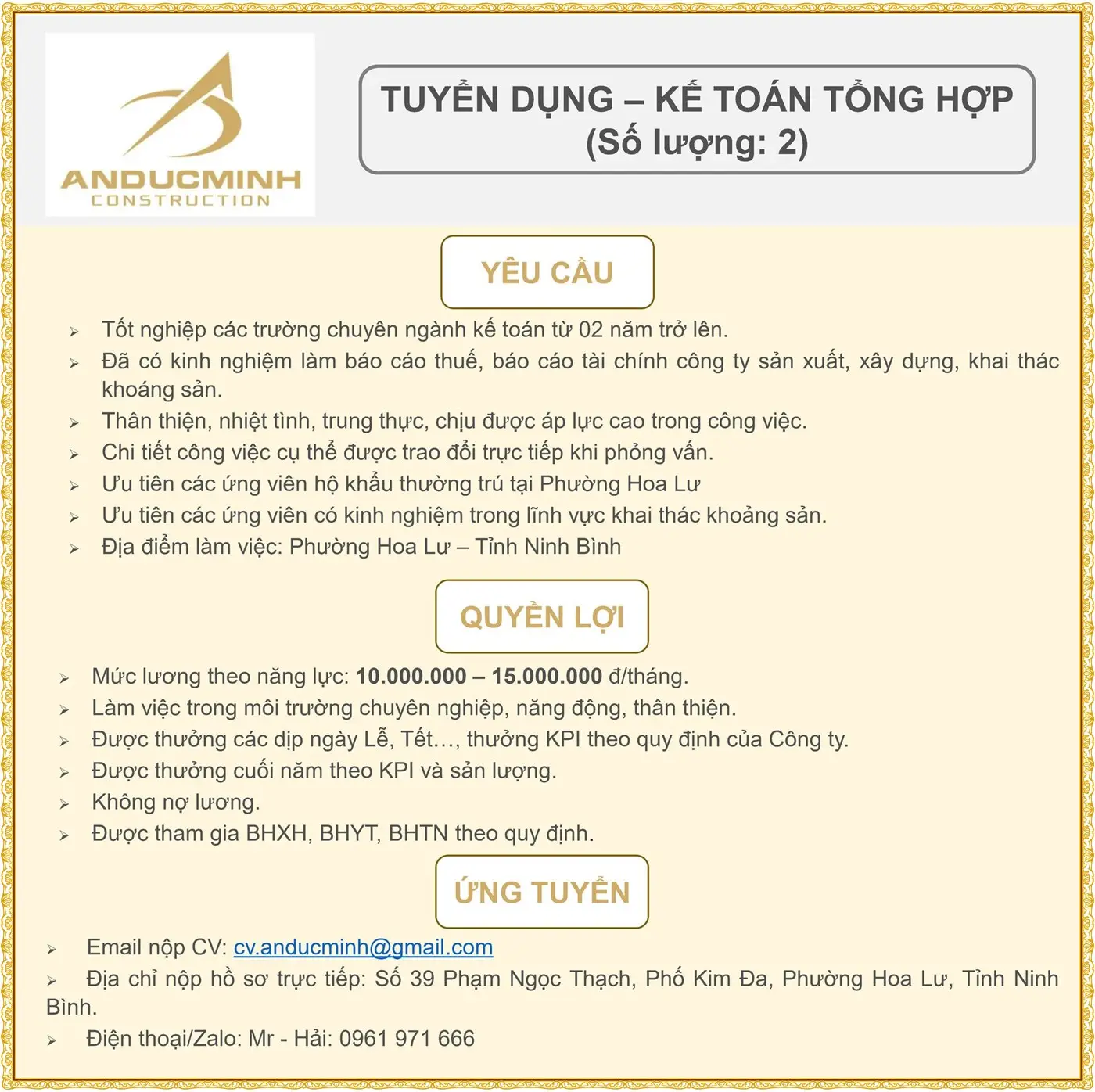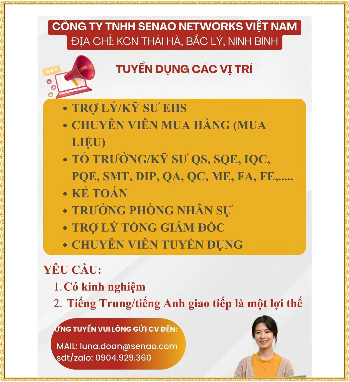 Liên hệ: Lan_Phòng nhân sự: 0983.411.105 (zalo)