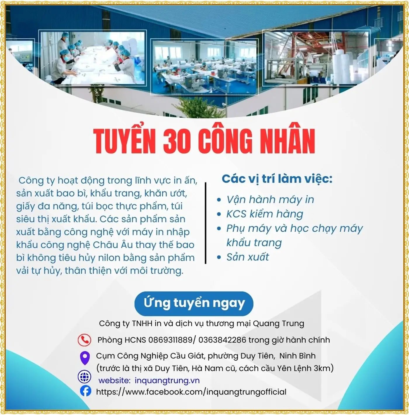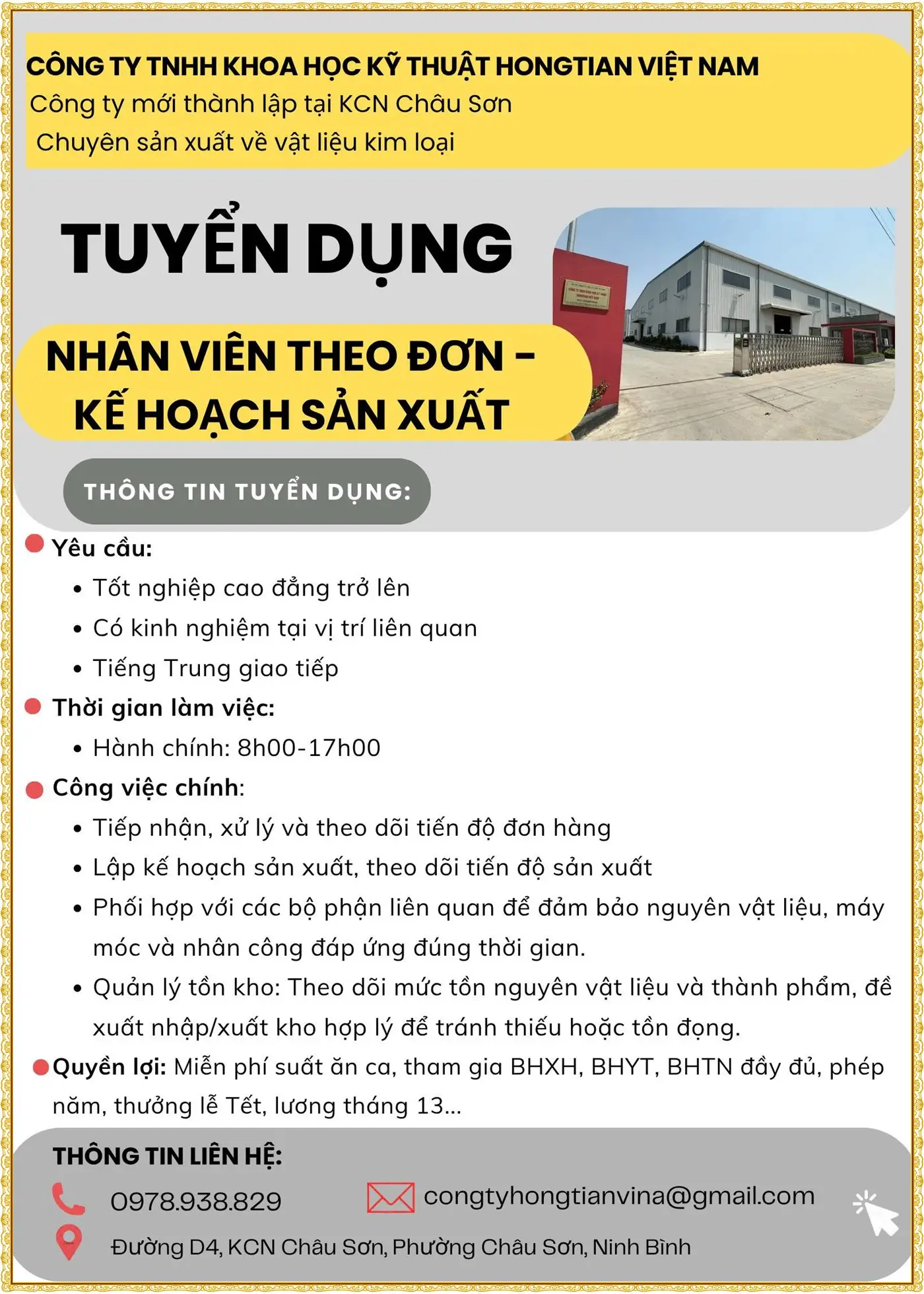 📍 Địa chỉ: KCN Đồng Văn 1, phường Đồng Văn, tỉnh Ninh Bình