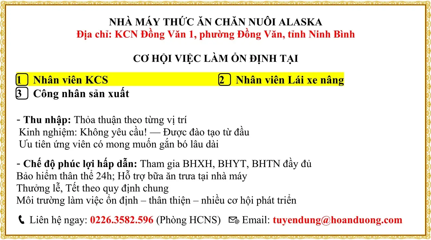 1️⃣ Nhân viên KCS 2️⃣ Nhân viên Lái xe nâng 3️⃣ Công nhân sản xuất