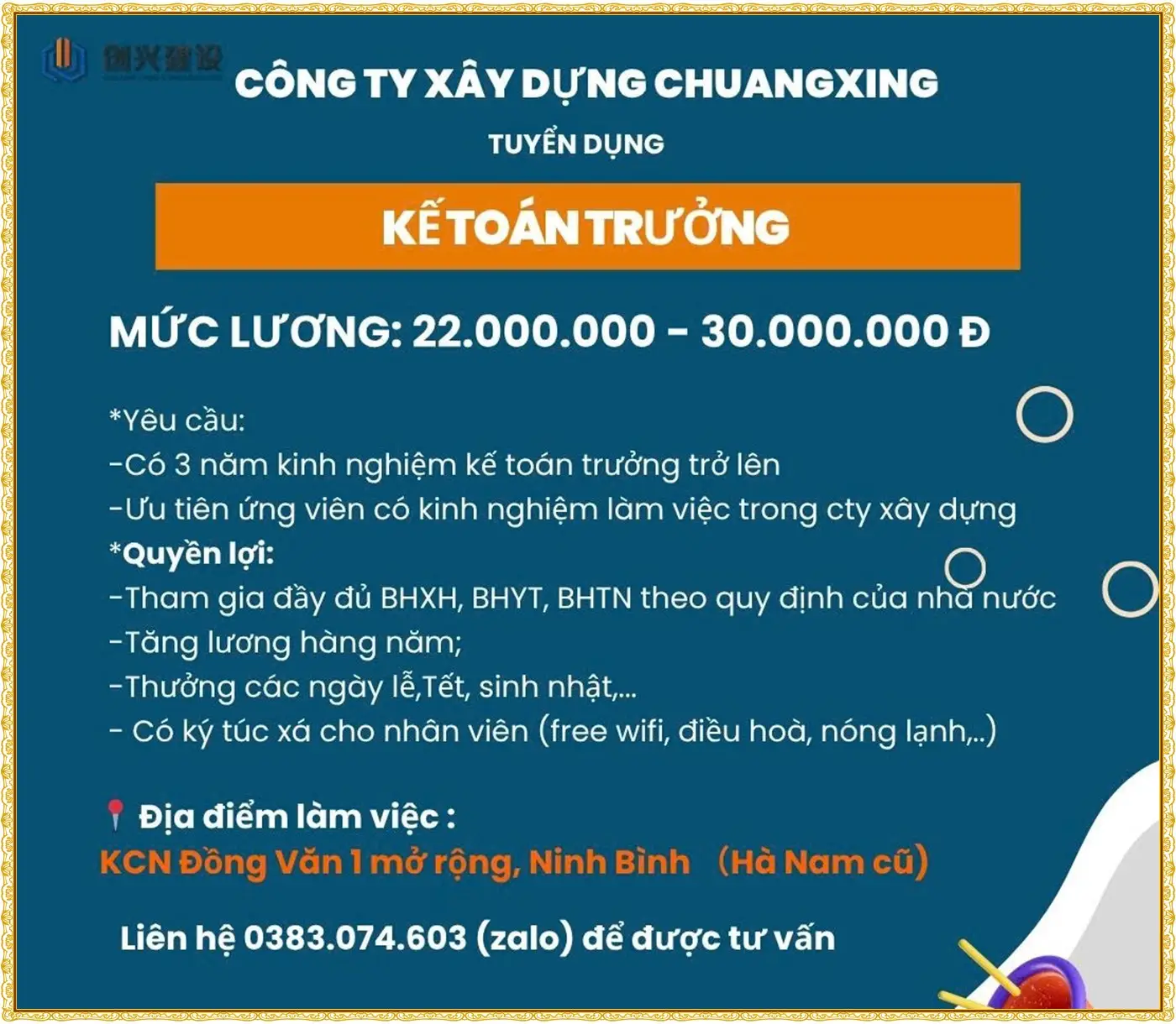 TUYỂN DỤNG – KẾ TOÁN TRƯỞNG